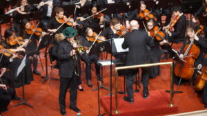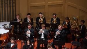 EQTeach Coaches Dennis O'Boyle, Scott Bell, Jim Rodgers, and David Premo perform the third movement of Haydn's Sinfonia Concertante with YPO.
