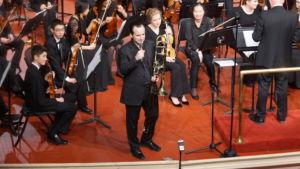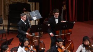EQTeach Coach Aaron White performs the third movement of the Koussevitzky Bass Concerto with YPO.