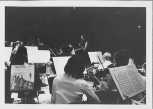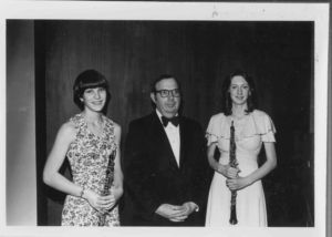 Third Spring Concert on April 30, 1977 at Duquesne University Recital Hall. Soloists Eda DiPasquale and Denise Plaza stand next to TRTO Conductor and Co-founder, Bernard Goldberg